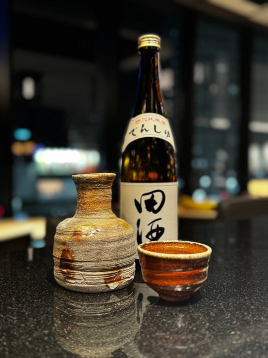 そして、その器で提供されるのが、青森の老舗蔵元・西田酒造店が手がける純米酒「田酒」です。酒の元である米を重んじ、醸造用アルコールを一切使用しない「田酒」は、米の旨みが広がる純米酒として、地元青森だけでなく全国の酒愛好家に愛される逸品です。昔ながらの製法を守り、幻の米“古城錦”や県産酒造好適米“華想い”を使用した酒造りへのこだわりが詰まった一杯は、日本酒本来の奥深い味わいを楽しめます。