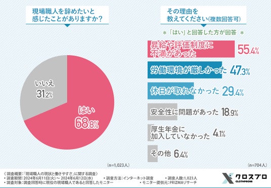約7割が現場職人を辞めたいと思った経験があることが明らかになり、半数以上が昇給や評価制度に対する不満を挙げています。
