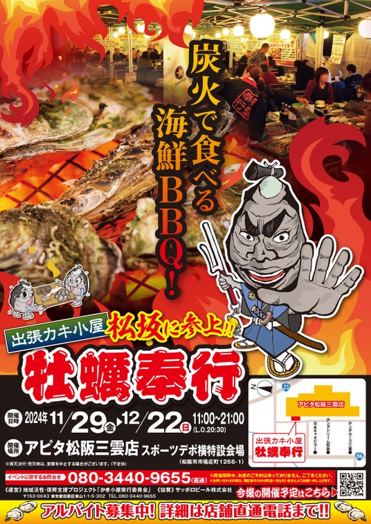 ▶︎東北の牡蠣を食べてもらうため、全国100箇所以上で開催している出張カキ小屋「牡蠣奉行」