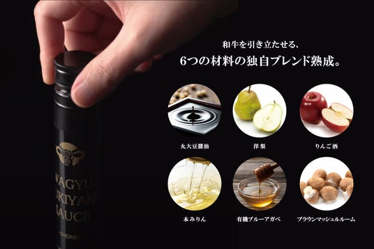 一般的な割り下とは製法が違い、洋梨/りんご酒/有機ブルーアガベシロップ/マッシュルーム粉末など自然の甘み原料と丸大豆醤油/本みりんを独自にブレンドし熟成させ、和牛だけが持つ桃やココナッツのような特有の甘い香り「和牛香(わぎゅうこう)」を引き立たせる和牛すき焼き専用プレミアム割下。