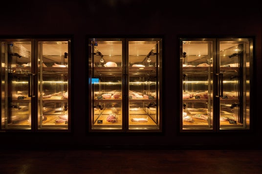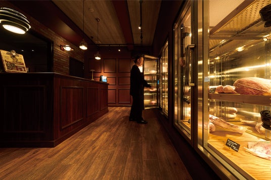 厳選された黒毛和牛が専用ショーケースに並ぶ
