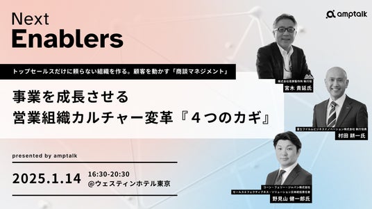 セールスイネーブルメントの実現を支援するamptalk株式会社(本社:東京都新宿区、代表取締役社長:猪瀬 竜馬、以下 amptalk)は、2025年1月14日(火)に、大企業向けのセールスイネーブルメントカンファレンス「Next Enablers 2025 Winter」をウェスティンホテル東京にて開催します。