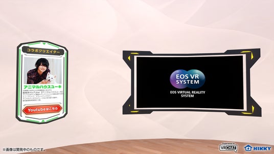 キヤノンは、同社の展開するVR映像撮影システム「EOS VR SYSTEM」の映像をHMDユーザーの方々に体験してもらい、システムおよび映像体験へのフィードバックをいただくためバーチャルマーケットへの出展を決定いたしました。今回のブースではユーザーに3D VR映像の視聴を気軽に楽しんでいただくだけでなく、各クリエイターとのコラボ映像の展示を通して、動画クリエイターのクリエイティビティを刺激し、VR撮影への関心を持っていただくことを狙います。