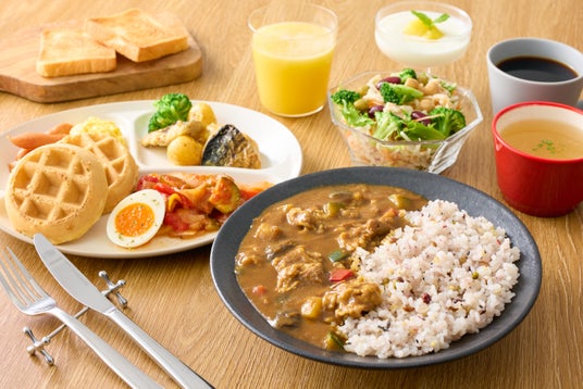 アメリカのロードサイドをイメージした自分で作って楽しめる焼きたてワッフルや、手軽にエネルギーをチャージでき、朝からお腹いっぱい楽しめる3種の日替わりカレーライス(ビーフ、シーフード、キーマ)など、朝から元気になれる多彩なメニューをご用意します。