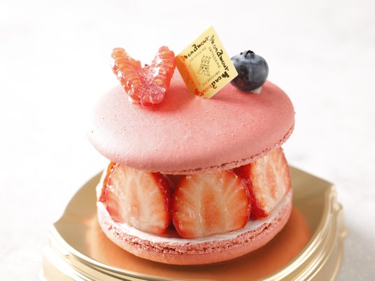 大きなマカロン生地に、香り高く芳醇なバニラクリーム、ブラックベリーのジュレ、カスタードムースと旬の国産いちごを贅沢にサンドしました、フランス語で「帽子」の意味をもつ可愛らしいお菓子です。マカロンとミックスベリーのマリアージュをお楽しみください。
