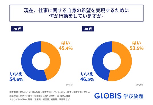・希望実現のために行動をしている人は、若手社会人の約半数