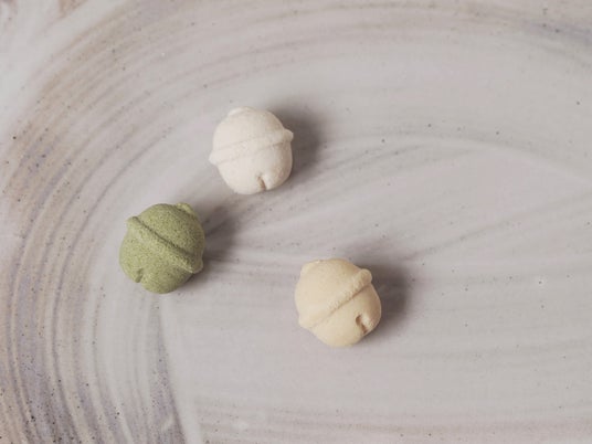 東京駅の銀の鈴にちなんだ形もかわいい上品な干菓子は、香川や徳島産のサトウキビから作る和三盆糖を使用。「檸檬と和三盆」のセットと「檸檬と抹茶」のセットの、2種類をご用意しています。