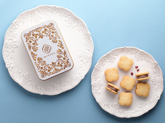 あずきの甘納豆の粒が入ったあずきクリームを、フランス産カマルグの塩を隠し味に使用したさっくりサブレでサンドしました。和洋の調和した味と見た目が楽しめるクッキー缶です。サブレのほんのりとした塩味が、甘いあずきクリームを引き立てます。