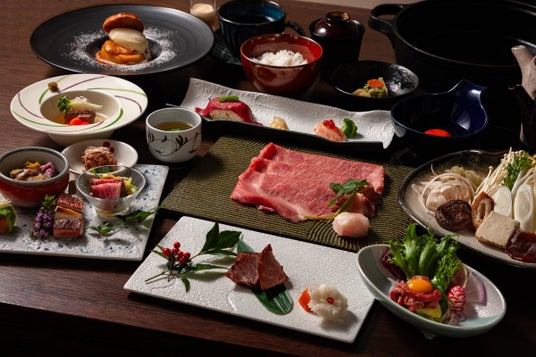 「おきたま伝統野菜」も贅沢に使用した、「米沢牛冬の会席コース」のイメージです。 詳細はページ下部にて。