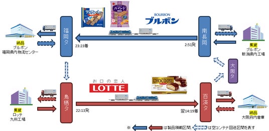 ~ブルボンの工場がある新潟から福岡へ、ロッテ九州工場から大阪への鉄道による往復輸送~