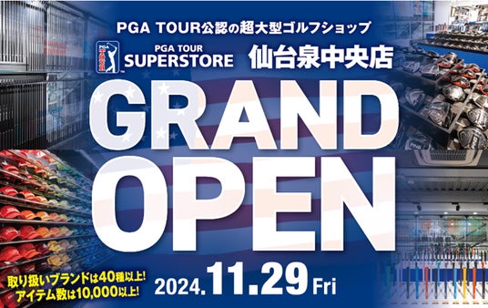 ゼビオグループは、宮城県仙台市に、超大型ゴルフショップ「PGA TOUR SUPERSTORE 仙台泉中央店」を11月29日(金)にグランドオープンいたします。