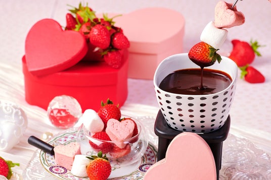 ロマンティックシーズンに心も身体も温まる酸味の効いたハートマシュマロとフレッシュいちごのチョコレートフォンデュや、温かいミルクにコーヒー風味の可愛いハートガナッシュを溶かして楽しむホットチョコレートをオプションでご用意。