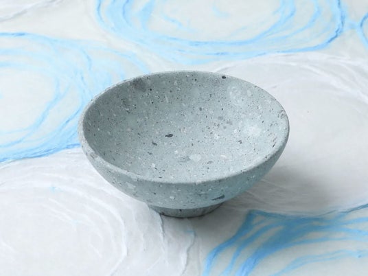 古墳時代から受け継がれてきた福井の伝統的石材である笏谷石(しゃくだにいし)。現在ではもう採掘されていない貴重なこの石を、ふくいブルーは古民家から収集して「器」として再生しています。