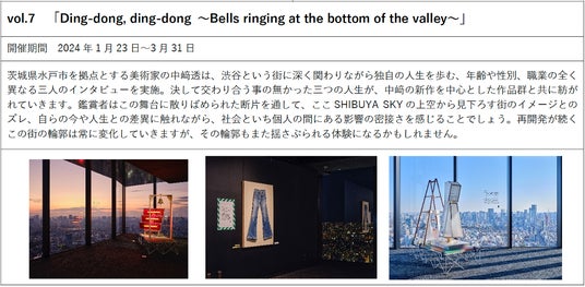 また、「SKY GALLERY EXHIBITION SERIES」は、「視点を拡げる」を共通テーマに、アーティストが展望装置である本施設を体験したインスピレーションから制作された作品を展開してきました。今回は一部のアーティストに実際にSHIBUYA SKYを体験いただき、生み出された新たな作品も展示いたします。