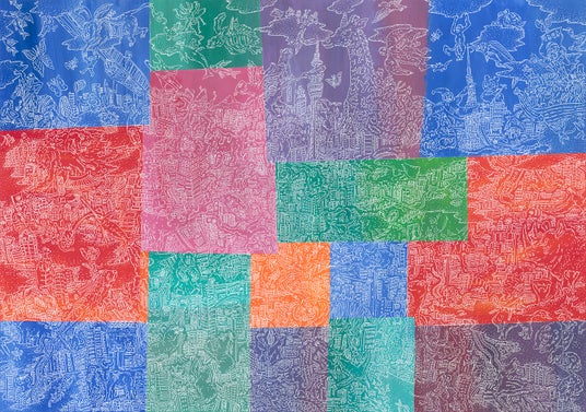 大好きなアニメやゲームキャラクターを模写することから絵を描く楽しみを持った少年期から、彼の世界観は更なる広がりを見せるようになった。細やかで緻密な線の集合体で描かれた動物や風景、妖怪やモンスターのような生き物が楽し気に生活される街並みなど、彼の頭の中のイメージそのままが絵に映し出されている。絵を描くことで人とつながりが生まれ、夢を実現させるための活力であると、彼の創作への意欲が絶えることはない。本展ではSHIBUYA SKYを体験し、キービジュアルを制作。