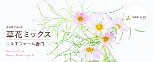 コスモファーム野口さんの草花ミックス・コスモス・枝物福岡県の「コスモファーム野口」さんから、秋らしい繊細なお花や草花、枝物をブーケにしてお届けします。