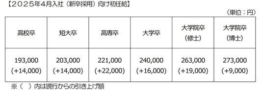 なお、初任給の引き上げについては、今後、労働組合との協議を経て正式に決定します。