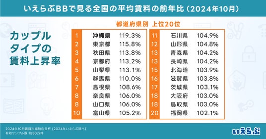 2.カップルタイプの平均賃料、沖縄県119.3%が東京都115.8%を抜き全国トップに!
