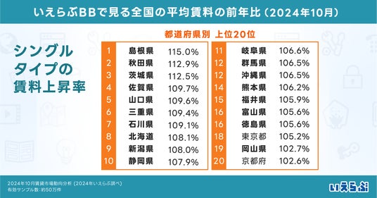 先月の調査結果(※2)に続き、シングルタイプ(※3)の平均賃料上昇率ランキングでは地方が上位を占めています。