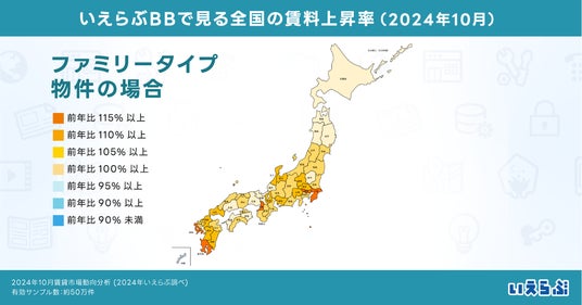 ※2 【PRTIMES】「カップル・ファミリータイプの平均賃料が全国的に上昇!一方で、カップルタイプの上昇率ワースト10に関東3県がランクイン|2024年9月賃貸市場動向分析(いえらぶ調べ)」