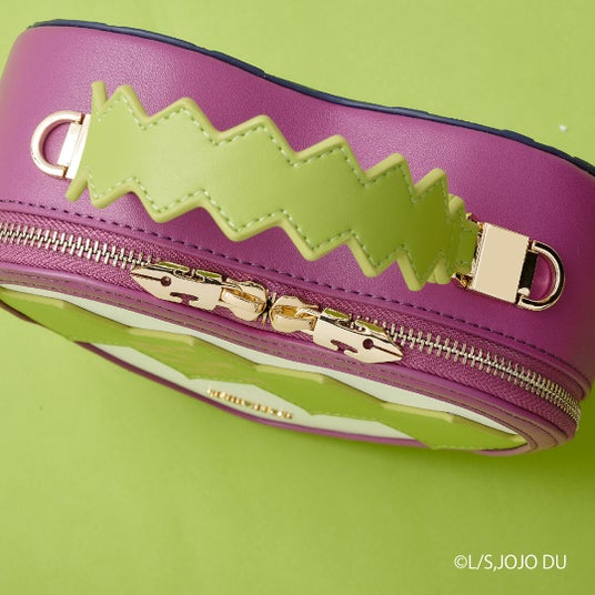 またバッグのサイドは、空条承太郎のベルトのライトブルーとイエローのジグザグを再現。