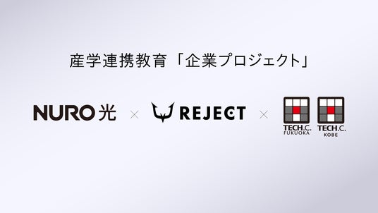 ソニーネットワークコミュニケーションズ株式会社が提供する高速光回線サービス「NURO(ニューロ) 光」は、プロeスポーツチーム「REJECT」を運営する株式会社REJECTと、福岡デザイン&テクノロジー専門学校および神戸・甲陽デザイン&テクノロジー専門学校が実践する産学連携教育システム「企業プロジェクト」に参画し、未来を創る人材の育成支援、さらにはイノベーション創出に取り組みます。