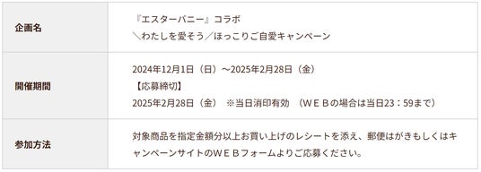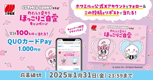 三幸製菓株式会社(所在地:新潟市北区)は韓国発の大人気キャラクター『Esther Bunny(エスターバニー)』と初のコラボキャンペーン、「\わたしを愛そう/ほっこりご自愛キャンペーン」を2024年12月1日(日)より開催中です。