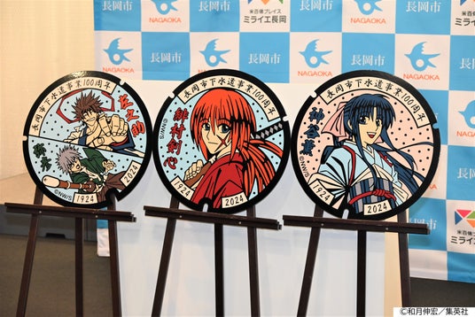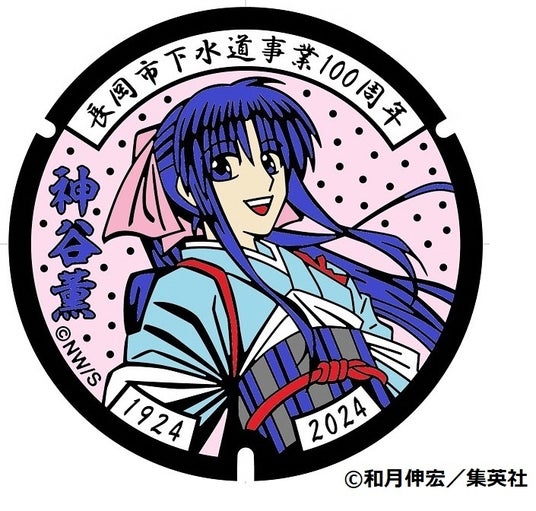 新潟県長岡市の下水道事業は、大正13(1924)年に着手し今年で100周年を迎えました。これを記念して、長岡市(旧越路町)出身の漫画家 和月伸宏さんによる、大人気作品「るろうに剣心-明治剣客浪漫譚-」のキャラクターたちが描かれた、マンホール蓋を製作します。マンホール蓋のデザインと設置場所が決定し、来年度春の設置にむけマンホール蓋の製作をすすめます。