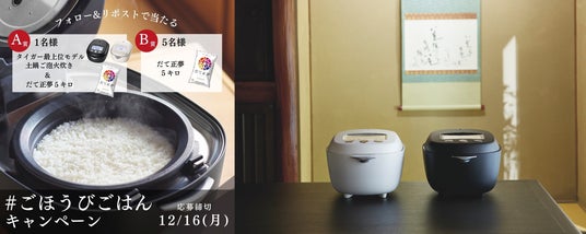 熱制御テクノロジーで世界をリードするタイガー魔法瓶株式会社(社長:菊池嘉聡、本社:大阪府門真市)は、「土鍋ご泡火(ほうび)炊き JRX-G100」の発売を記念して、全国各地のブランド米とコラボするSNSキャンペーン「#ごほうびごはんキャンペーン」を実施いたします。