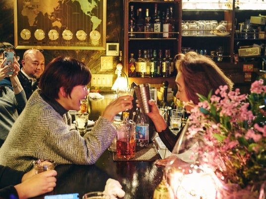 外国人向けの英語ガイド付きツアーで、紙芝居によるクイズなどをしながら、街歩きと2軒のスナックを2時間半で巡ります。
