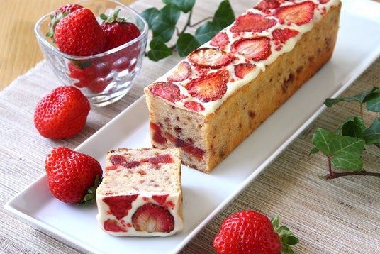 白あんをたっぷり練り込んだしっとりとした生地に「いちごフレーク」と「ドライいちご」を忍ばせ、甘酸っぱいいちごの和風パウンドケーキに焼き上げました。仕上げにホワイトチョコをかけ、真っ赤ないちごのチップスを贅沢にトッピングした一品です。