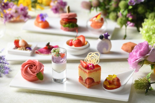 白あんをたっぷり練り込んだ甘酸っぱいいちごの和風パウンドケーキや、濃厚なクリームチーズに甘酸っぱいソースを組み合わせたストロベリーチーズプリン、花々のモチーフがファンタジックな世界観を表現したアフタヌーンティーなど、旬のいちごを贅沢に使った期間限定スイーツが取り揃います。