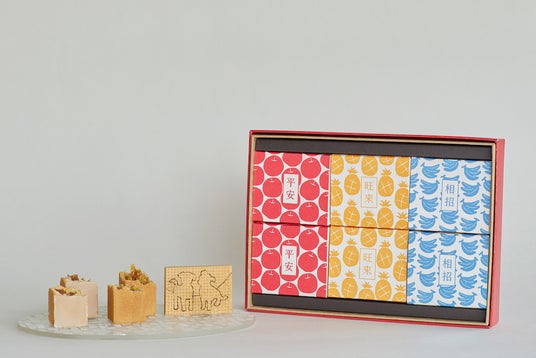 縁起物フルーツを使ったパイナップルケーキ、りんごケーキ、バナナワッフルクッキーが楽しめるお正月限定セット。パイナップルは幸運、りんごは平安、バナナはもてなしの心を表しています。2025年の干支のイラストが描かれた限定ギフトボックスに入った、新年が素晴らしい年になるよう願いを込めた縁起の良い贈り物です。