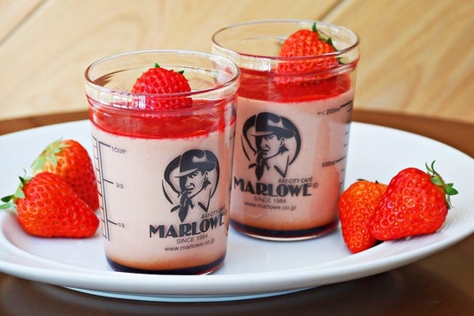 フランス・ブルターニュ産の無添加ストロベリーソースをふんだんに使っています。クリームチーズプリンをベースにストロベリーピューレとフランボワーズブリゼを混ぜ合わせたものを使用しました。濃厚なクリームチーズに甘酸っぱいソースの組み合わせはまるでムースケーキを食べているような感覚です。