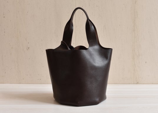 イタリア語で「バケツ」を意味するとおり、セッキオはたっぷりと深く、贅沢に革をつかったバッグならではのボリューム感と上品さを感じさせるたたずまいになっています。