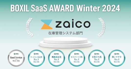 株式会社ZAICO(本社:山形県米沢市、代表取締役:田村壽英)が提供する、在庫管理アプリNo.1(※)のクラウド在庫管理システム「zaico」は、スマートキャンプ株式会社(以下「スマートキャンプ」)が主催する「BOXIL SaaS AWARD Winter 2024」の在庫管理システム部門で「Good Service」ほか5つのNo.1に選出されました。