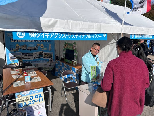 本イベントにおいてDASPでは、使用済み食用油のリサイクルに関する実演や回収方法の説明を行い、来場者の皆様にエネルギーの地産地消に対する理解を深めていただきました。また、イベントに出展された飲食店様から、使用済み食用油300リットルを回収しました。