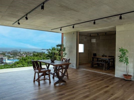 窓がフルオープン、抜群の眺望 広々とした1階スペース