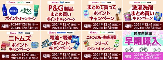 ホームセンターの「コメリパワー」や「コメリハード&グリーン」を通し地域のライフラインであり続けたいと願う株式会社コメリ(所在地:新潟県 新潟市、代表取締役社長:捧 雄一郎)は、コメリの決済手段「コメリカード」「アクアカード」会員様向けに、2024年12月から9種のキャンペーンを新たにスタートいたしました。