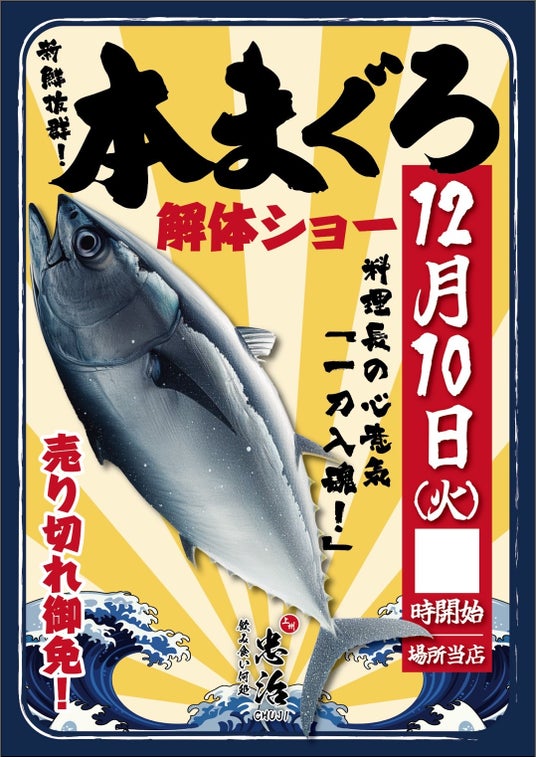 GRAND OPENを記念して12月10日(火)に赤字覚悟のマグロの解体ショーを開催