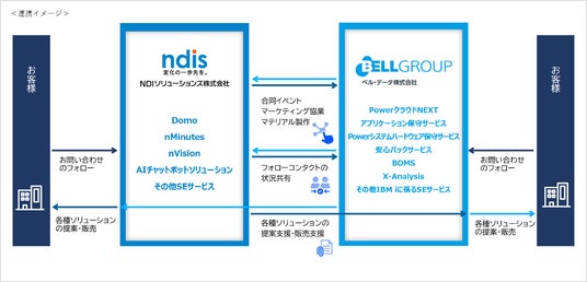 NDISが持つ『CB3』等の汎用的なAI関連ソリューションや『Domo』に代表されるBIプラットフォームに関する知見と、ベル・データが持つ『PowerクラウドNEXT』や『生成AI連携サービスfor i』などのIBM i (AS/400)に特化したソリューションやサービスを相互に取り扱い、より多くのお客様にご活用いただくことで、現在の課題解決と新たな価値創出を目指します。