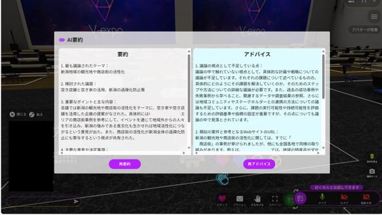 メタバース×生成AIで会話要約とアドバイスを行う仕組みは新しい取り組みであり、その効果を実証しました。