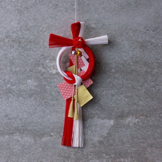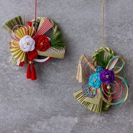好奇心をくすぐる、個性的な配色。良運と幸福がいつまでも続くよう、しめ縄を末広がりの八の字に結びました。
