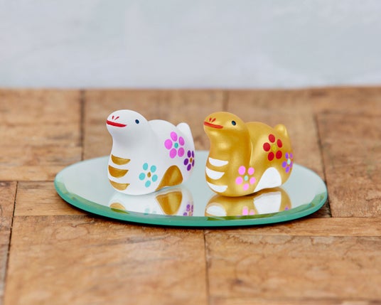 干支みくじ 巳(白・金)各594円 約H4cm×W5cm