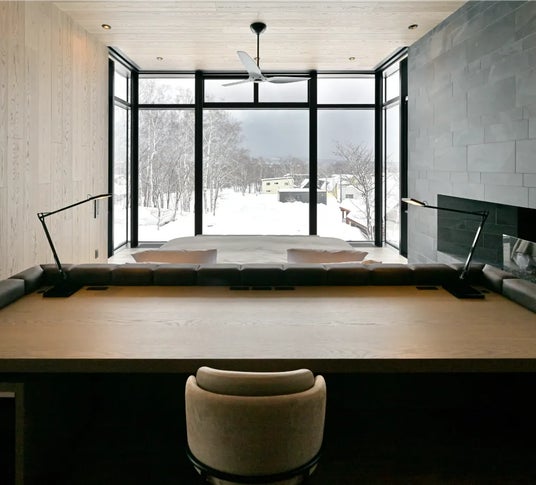 温水式のセントラルヒーティングの導入、輻射熱によって窓から侵入するコールドドラフトの室内への侵入を防ぐ技術など、ニセコにて多くのプロジェクトを手掛ける建築家リカルド・トッサーニ氏の設計は、ニセコの厳しい冬に耐え得る技術と斬新なデザインの融合を実現しています。