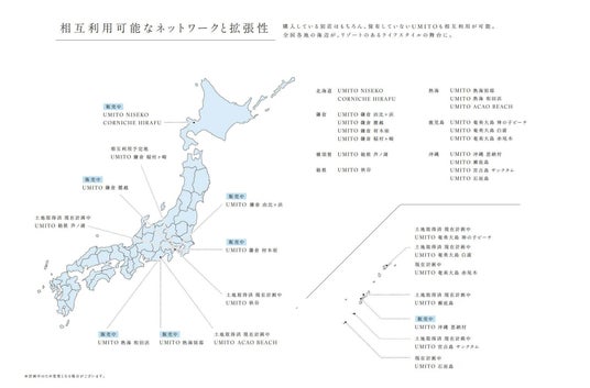 UMITOのオーナーは、自分の所有する利用可能日数を使用することで、他のUMITOにも泊まることができます。