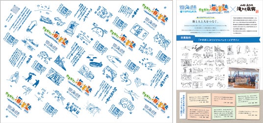 「やまがた海洋塾2024」の学びの最後のまとめとして参加者一人一人の庄内浜への思いをイラストに込め、そのイラストが今回発売されるコラボセットの包装紙のデザインとして盛り込まれています。また、参加者の体験や学びを「思い出通信」としてまとめたものを二次元コード化して掲載しました。