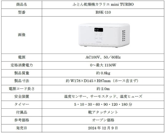 ふとん乾燥機カラリエ mini TURBO「JSK-S10」2025年2月発売予定