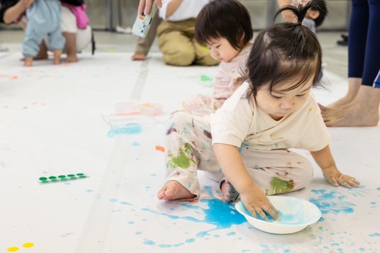 小麦粉絵の具で色が変化していく様子を見たり、初めての 感触に触れることで遊びながら脳の刺激にも繋がります。