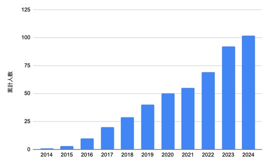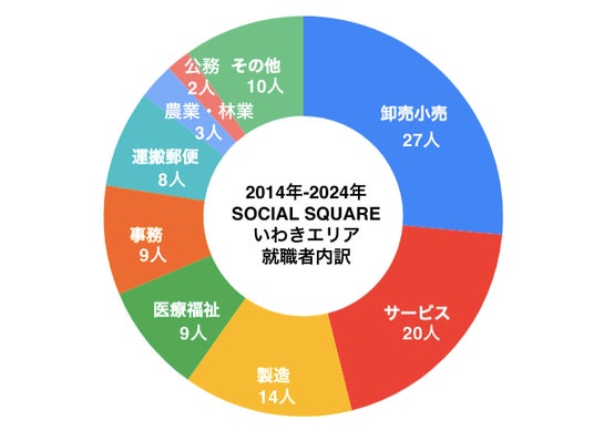 2014年ー2024年 SOCIALSQUAREいわきエリア就職者数累計